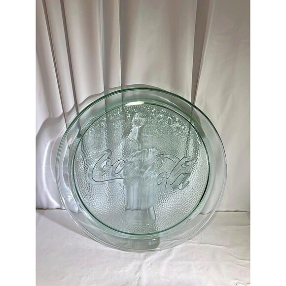 COCA-COLA Coke Bottle Round Clear Green Glass 13" Serving Tray Platter Plate
