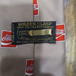 COCA-COLA Vintage Neck Tie Riverside Polyester Brown/Classic Logo 1990s USA made