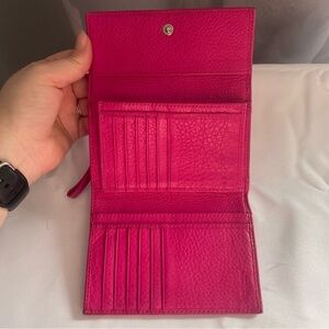 COCCINELLE Hot Pink Women's Pebbled Soft Leather Wallet Handmade In Italy Summer
