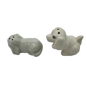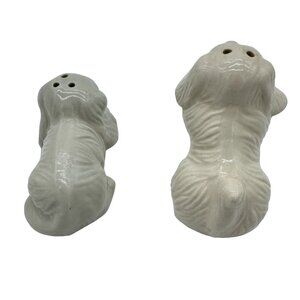 COCKER SPANIEL SALT AND PEPPER SHAKERS CERAMIC WHITE HAND PAINTED FACES NO FLAWS