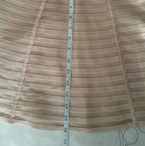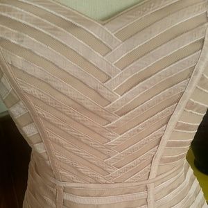 A feminine delicate powder pink cocktail dress. Has a corset style top part with adjustable straps. Very short for someone as tall as me 5'5". It's a size Bebe. I am a size 34C in bras and this fitted perfect when I wore it. Unfortunately I had my 3rd son and so I have to let it go. Wore it once, on the last pic.