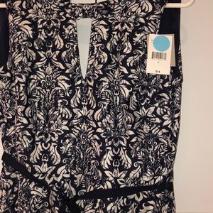 Brand new with tags. Size 6. Navy and white knee length dress. Fit and flair with a ribbon at the waistline and a keyhole neckline.