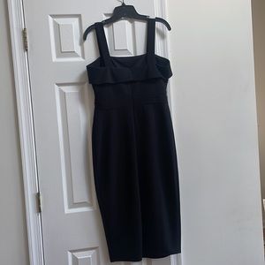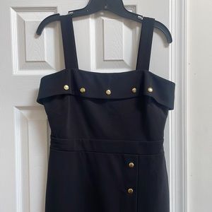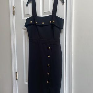 Chic, thick strap, gold details, cocktail dress! MIDI length with slit. Zipper in back. Worn once!