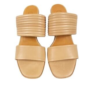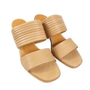 COCLICO Bergen Wood Block Heel Leather Sandals in the color Natur Camel (light tan wood color).