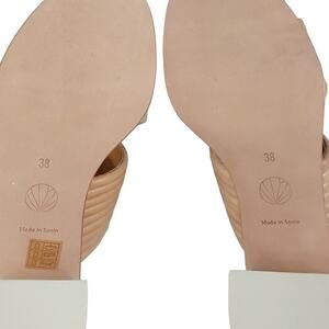 Genuine Italian leather upper straps, sole and lining, 2.5" wood block heel. Made in Spain!