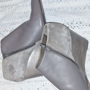 COCLICO MADE IN SPAIN LEATHER AND SUEDE ZIP WEDGE HEEL BOOTIES