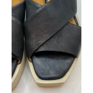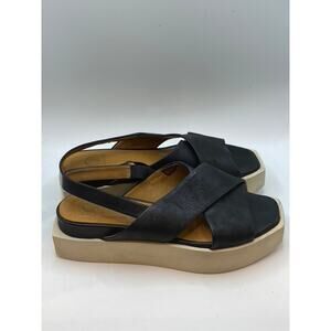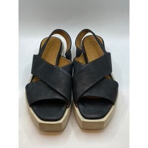 COCLICO Women’s Black Leather Square-Toe Strappy Platform Serena Sandals SZ 36(US6)