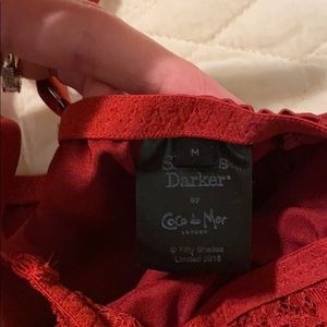 Beautiful, dark red satin lingerie from COCO DE MERS limited edition FIFTY SHADES DARKER collection. This item is like new without the tags. I purchased as a collectors item. Size medium but fits like a small. I was never able to fit into it so it has never been worn. This line is no longer sold or made so it’s really unique and great for a collector. Last photo is not actual item just a photo from the ad campaign for color/material reference. Special ordered from London!