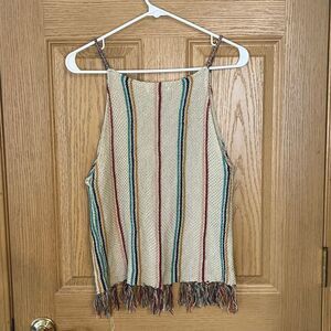 COCO + JAIMESON Striped Fringe Tank Top Large