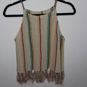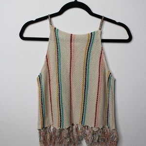 COCO & Jaimeson Beige Colorfull Stripped Fringe Open Weave Neck Knit Tank Small