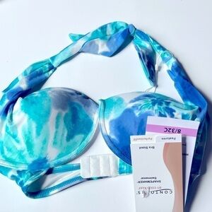 COCO REEF Contours Cameo Printed Bra-Sized Halter Bikini Top 8/ 32C New Blue