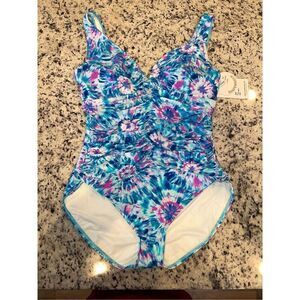 Size 14/38C | Multi Tye Dye | Coco Reef improves on a timeless look with this shirred one-piece, a chic swimsuit with a flattering fit.