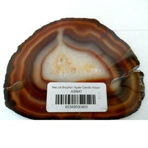 Natural Agate Coaster / Candle Holder These agates are created from Brazilian geode thinly sliced to reveal a brilliant crystalline pattern. Traditionally revered for their metaphysical properties, no two Brazilian Agates will ever look the same. Diameters may vary from 3.5" to 5", and approximately 1/4" thin. Makes an excellent coaster or the perfect holder for 3" candles and luminaries. There are naturally-occurred cracks, chips, and holes. Colors may vary from posted images due to differences between displays. The bar code label affixed to the bottom of the item indicates "Candle Holder"