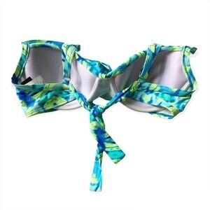 Coco Reef bright neon green and blue push up underwire bikini bra top. Ruffle detail. Adjustable straps. Fits like 32C.