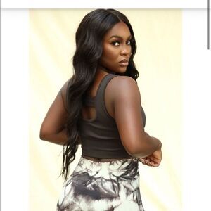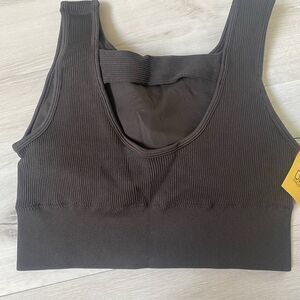 COCOA | RIBBED U-CUT CROP TOP BROWN M NWT