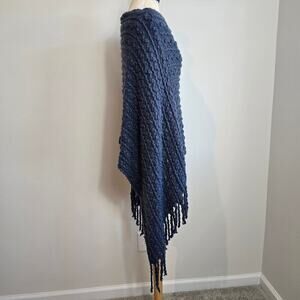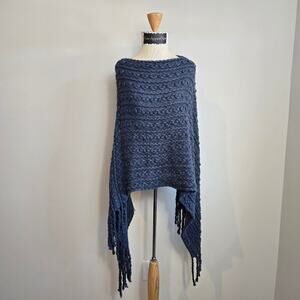 COCO+CARMEN Blue Knit Pullover Fringe Shawl Sz Onesize