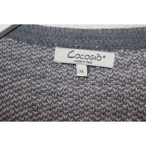 COCOGIO Women's Grey Cream Herringbone Open Cardigan Sweater Size Large