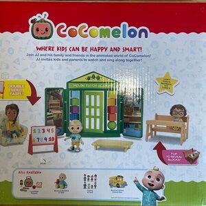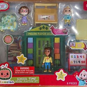 The COCOMELON School Time Deluxe Playtime Set is a 1:12 scale plastic action figure featuring characters from the COCOMELON Shows. Released in 2021, this set is part of the COCOMELON School Time series and is themed around a school setting. It includes figures from the popular COCOMELON franchise and is suitable for playtime fun.