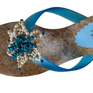 How cute are these sandals - beaded floral detail with cork foot bed - Please see pictures