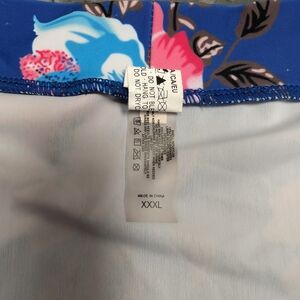 Vibrant blue bikini bottom with floral design. Features pink and white flowers.