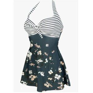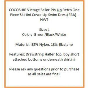 COCOSHIP Vintage Sailor Pin Up Retro One Piece Skirtini Cover Up Swim Dress(FBA) - NWT