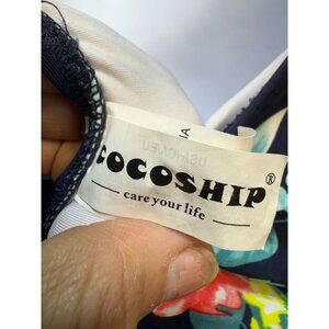 COCOSHIP Women's Retro Backless One-Piece Swimsuit Stretch Size M Multi Floral