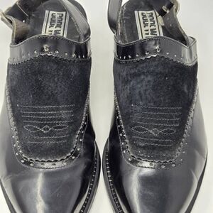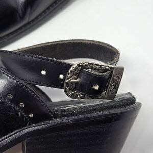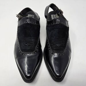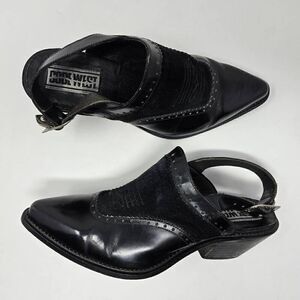 CODE WEST VINTAGE BLACK LEATHER NUBUCK SILVER BUCKLE BACK STRAP MULE WOMENS 8 M
