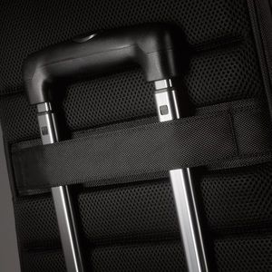 Back strap to slide over the handle of most rolling suitcases