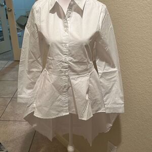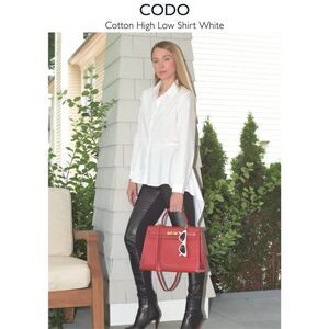 CODO Women's XS Colton High Low Cotton Shirt White Regal Coquette Lagenlook NWT