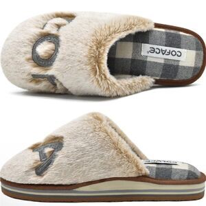 COFACE Gray Womens Memory Foam Slip on Plush Fur Slipper w/Cushion Lining 7 NWT