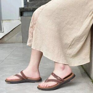 COFACE Women's Orthopedic Strappy Thong Vegan Leather Flip Flops Size 7