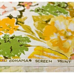 COHAMA Vintage Retro NEW Old Stock "Camellia" Yellow Floral Fabric ~ 48" x 34"