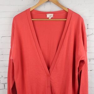 HOT PINK LONG SLEEVE V NECK BUTTON DOWN COTTON OVERSIZED SOFT LIGHTWEIGHT CARDIGAN SWEATER SIZE MED BY COINCIDENCE & CHANCE PRE OWNED NO FLAWS