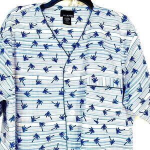 COLAR LESS V-NECK SHORT SLEEVE TROPICAL SHIRT by BILL BLASS SIZE LARGE