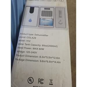 The COLAZE WiFi-Enabled Dehumidifier is a portable console unit designed to remove excess moisture from the air, making it ideal for home use in spaces up to 850 square feet. With its sleek white color and compact dimensions of 127 inches in length, 305 inches in height, and 203 inches in width, this dehumidifier is both efficient and stylish. The unit is equipped with smart home technology, allowing it to be controlled remotely through its Wi-Fi connectivity for added convenience.