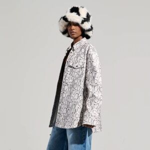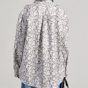 Icy on the outside, spicy on the inside with The AKIRA Label Cold Blooded Button Up. This chic top is crafted from a non-stretch faux leather base and features a snakeskin pattern throughout, a pointed collar, faux hematite hardware, long sleeves with buttoned cuffs, dual buttoned chest pockets, and tonal stitching. Complete with button down front closures, and a longline, relaxed silhouette. Pair with flowy trousers and stilettos for a finished look.
