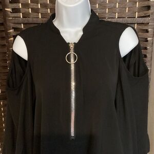 COLD SHOULDER ZIP FRONT BLOUSE ( Size: X-Large)