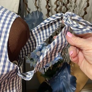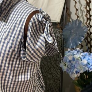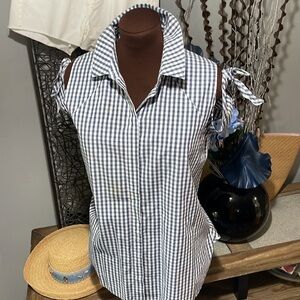 Crisp navy& white check cold shoulder top. Hi/low shirt tail! I wore this to a beach party🌴 Looked 🥰 with chucks 👟 and denim capris! Excellent condition.