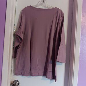 This pretty dusty lilac tee has long sleeves. It is new with tags.