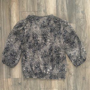 COLDWATER CREEK BLACK/WHITE BRAIDED V-NECKLINE ELASTIC WAIST PEASANT BLOUSE 14