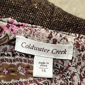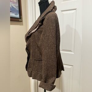 COLDWATER CREEK BROWN TWEED RUFFLED COLLAR PEPLUM,OFFICE SIREN JACKET SIZE 16.