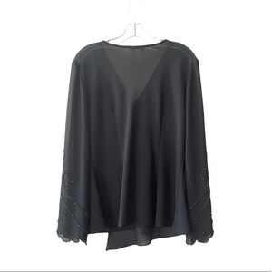 COLDWATER CREEK Black Chiffon Blouse Women’s V-Neck Long Sleeve Embellished Top