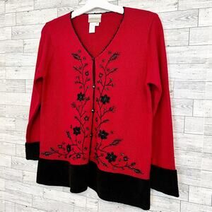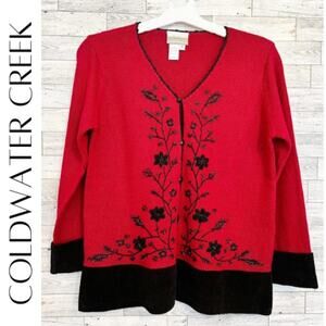 COLDWATER CREEK Black & Red Beaded Knit Cardigan, M