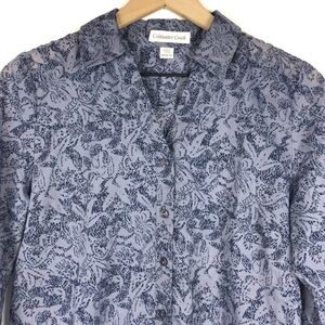 COLDWATER CREEK Button Up Shirt Long Sleeve Floral Dot Lightweight Petite Medium