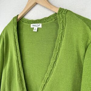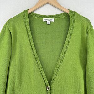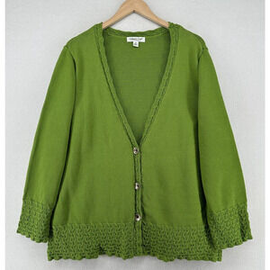 COLDWATER CREEK Cardigan 1X Plus Cable Trim Button Front Cotton Blend Green