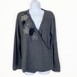 COLDWATER CREEK Cashmere Angora Blend Surplice V-neck Grey Sweater Medium Soft