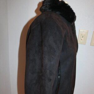 COLDWATER CREEK Coat Jacket Black Faux Suede/Faux Shearling Fur Vegan PS Sherpa