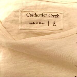 💧COLDWATER CREEK Cream Colored Tee with Star Dripping Paint Design size Small