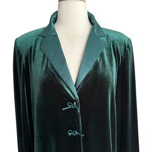 COLDWATER CREEK Dark Green Velvet & Satin Jacket Bows Whimsical Elevated Chic 12