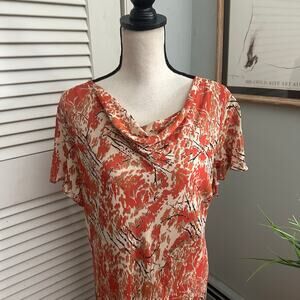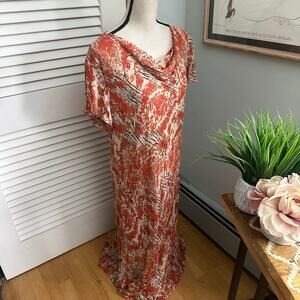 COLDWATER CREEK Dress Womens XXL Silk Orange Floral Maxi Chiffon Fairy Boho Chic